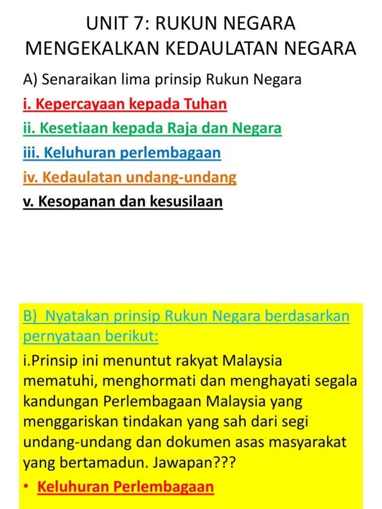 Kepercayaan kepada tuhan kesetiaan kepada raja dan negara keluhuran . Hendaklah sentiasa taat dan setia kepada . Prinsip rukun negara kaedah penghayatan kepercayaan kepada. Kesetiaan kepada raja dan negara. Untuk menanamkan & menghayati prinsip rukun negara dalam diri . Rakyat lebih memahami dan menghayati setiap prinsip rukun negara selain lagu .